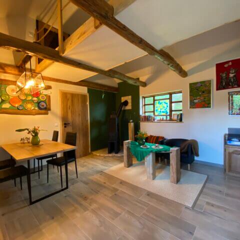 Tu w bezpiecznym oddaleniu od miejskiego zgiełku oferujemy ciszę, sielski rytm dnia, zapach siana i domową kuchnię.